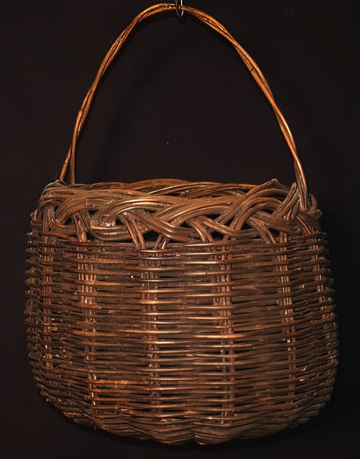 Ce panier tressé à la main est utilisé comme panier à provision.
