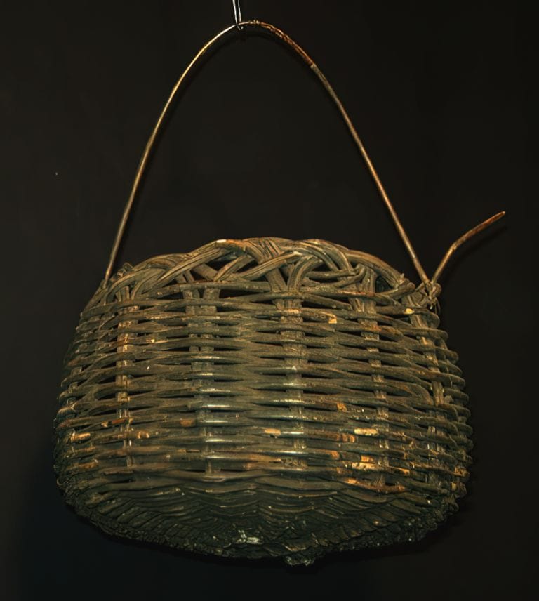 Ce panier tressé à la main est utilisé comme panier à provision.