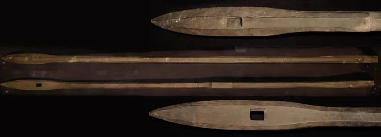 Cette perche percée de plusieurs trous carré est utilisée pour la pêche à la tortue. Elle est posée sur la pirogue (voir encoches). Tête zoomorphe de tortue.